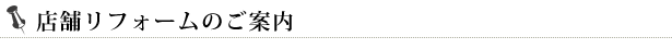 | 以下に、当社で取り扱う店舗リフォームの内容を掲載しております。こちらのリフォームコンテンツについて、より詳しいご説明をご希望のお客様は、当社までお気軽にお問い合わせください。 |